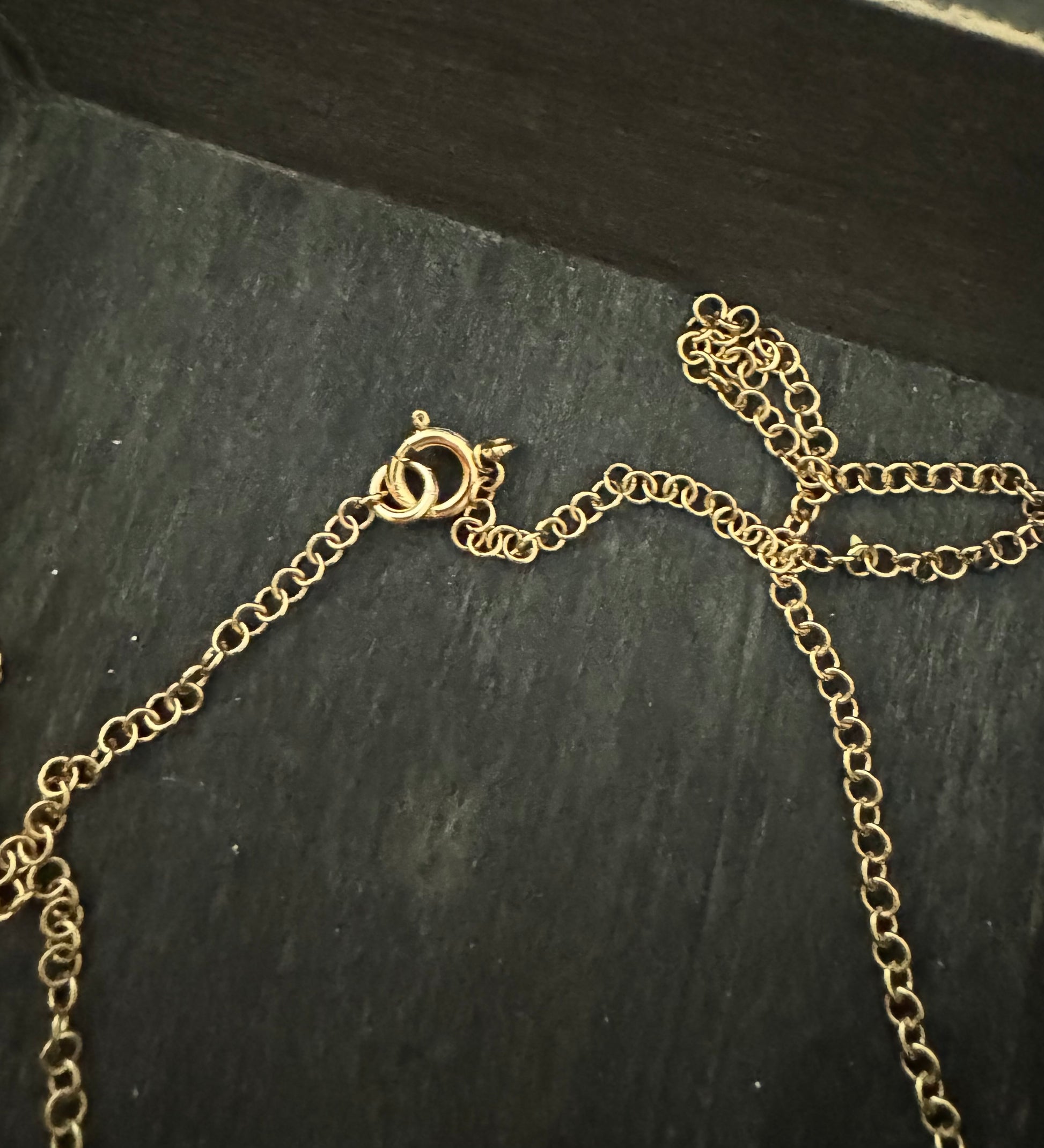 The necklace measures 20 inches in length and secures with a gold-filled spring ring clasp, ensuring both elegance and functionality. A timeless piece with a sustainable twist—perfect for those who appreciate vintage charm and modern craftsmanship.